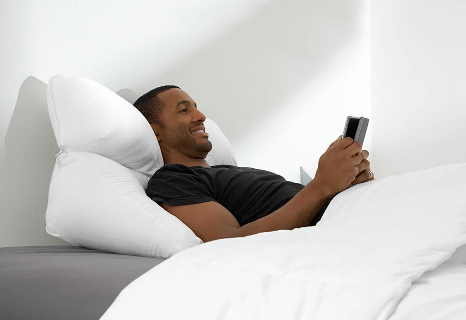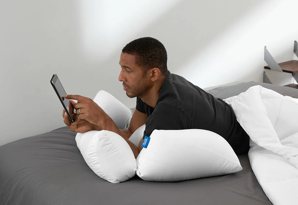 The 10-in-1 Flip Pillow transforms into a variety of positions to help you sleep, read, relax or watch TV in total comfort. Its unique, two-piece design makes it our most versatile pillow ever. Use it as a wedge to elevate your torso at night. Or, use it as a backrest to sit up in bed. You can even use it under your knees to reduce back pressure. The possibilities are endless. Choose Standard (29″ L x 20″ W x 8″ H) or Queen/King size (29″ L x 30″ W x 8″ H).