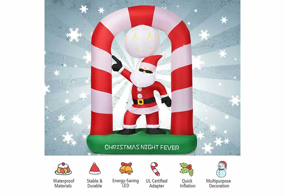 The 7-Ft. Inflatable Disco Santa is the perfect way to spread Christmas cheer throughout your neighborhood.