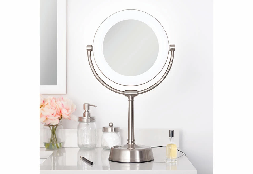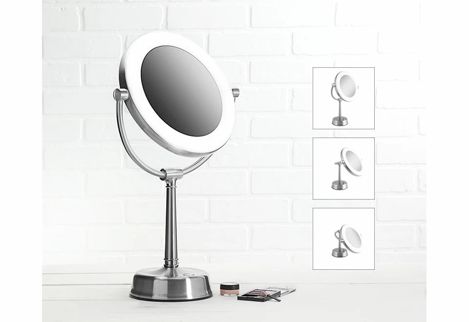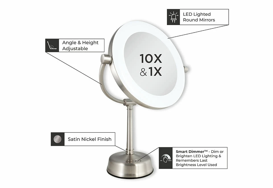 The Best Adjustable Vanity Mirror is fully customizable with adjustable brightness of its ultra-bright LED lighting, plus dual 10X/1X magnification, adjustable height and 360-degree endless rotation.