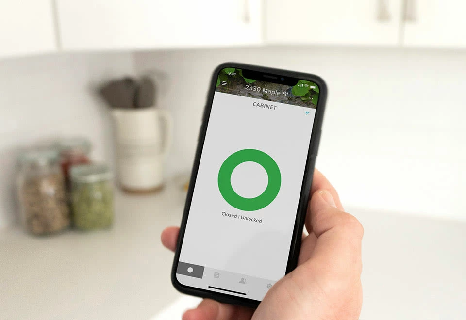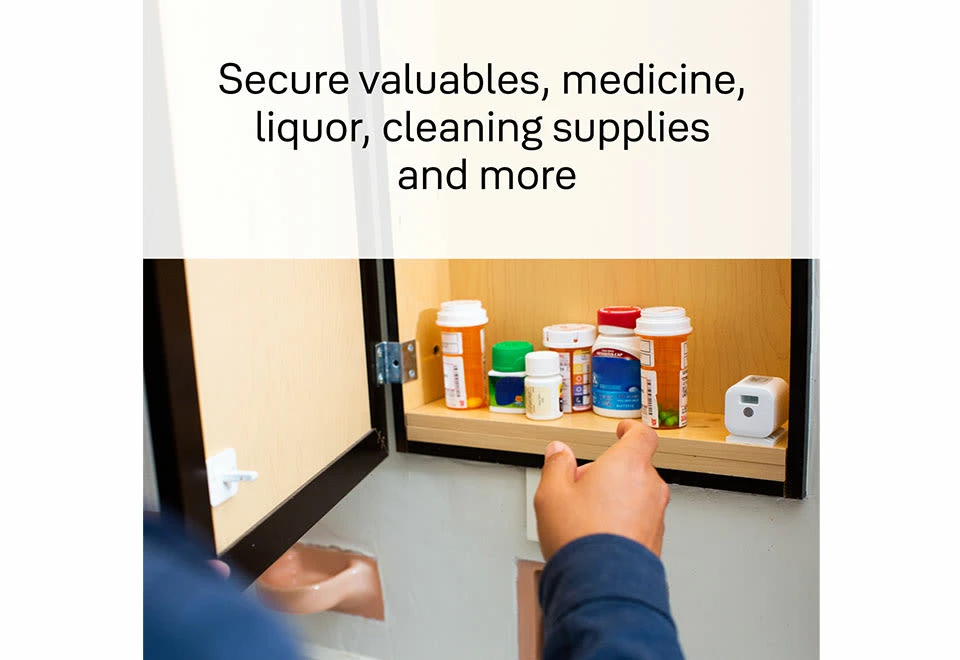 The Bluetooth Cabinet Door Lock mounts discretely inside most cabinets and drawers to safely store medicine, cleaning supplies, liquor or important documents.