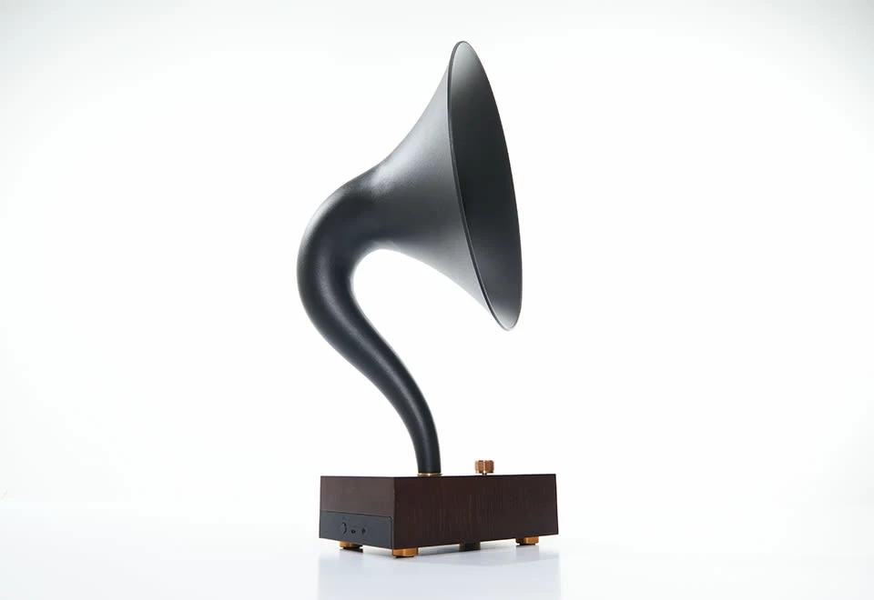 The Bluetooth Gramophone combines the best of two worlds. It recreates the look and sound of a vintage 1920s gramophone, while playing your favorite songs and playlists from your phone or tablet via Bluetooth. Whether you enjoy modern music or vintage recordings, the Bluetooth Gramophone provides a unique listening experience. Compatible with all iPhones, iPads, Samsung Galaxies and other Android devices. Also features a 3.5mm line in jack for wired connection to a CD player or turntable.