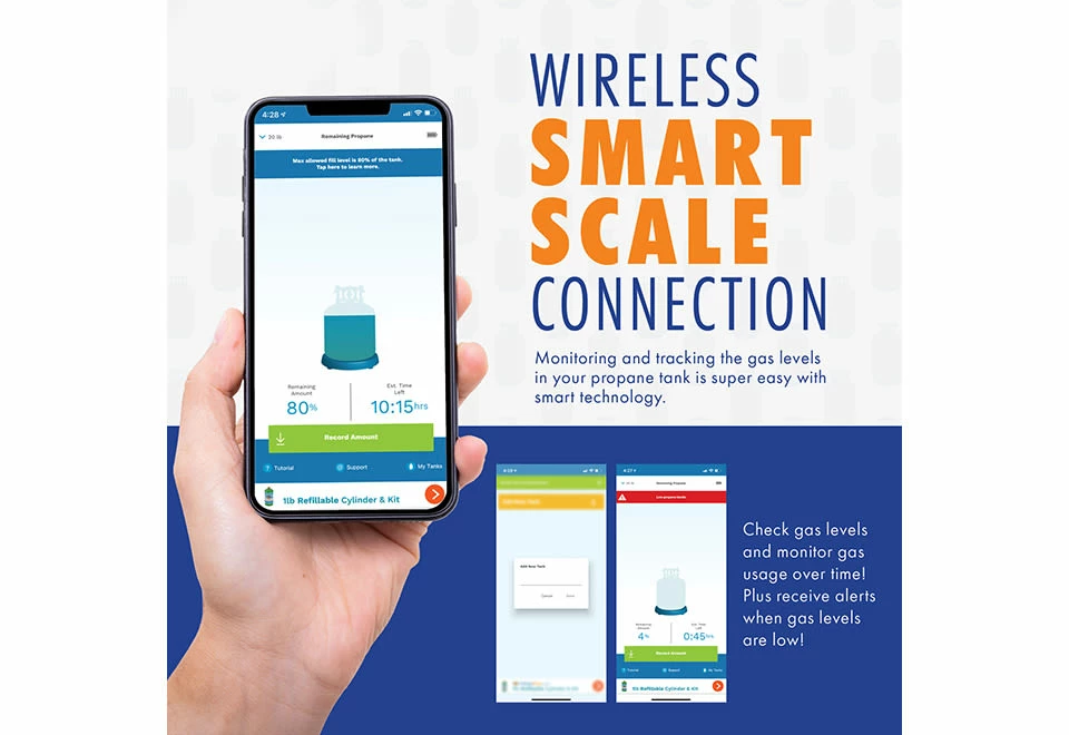 The Bluetooth Propane Scale keeps you up to date on how much propane is left in your tank.