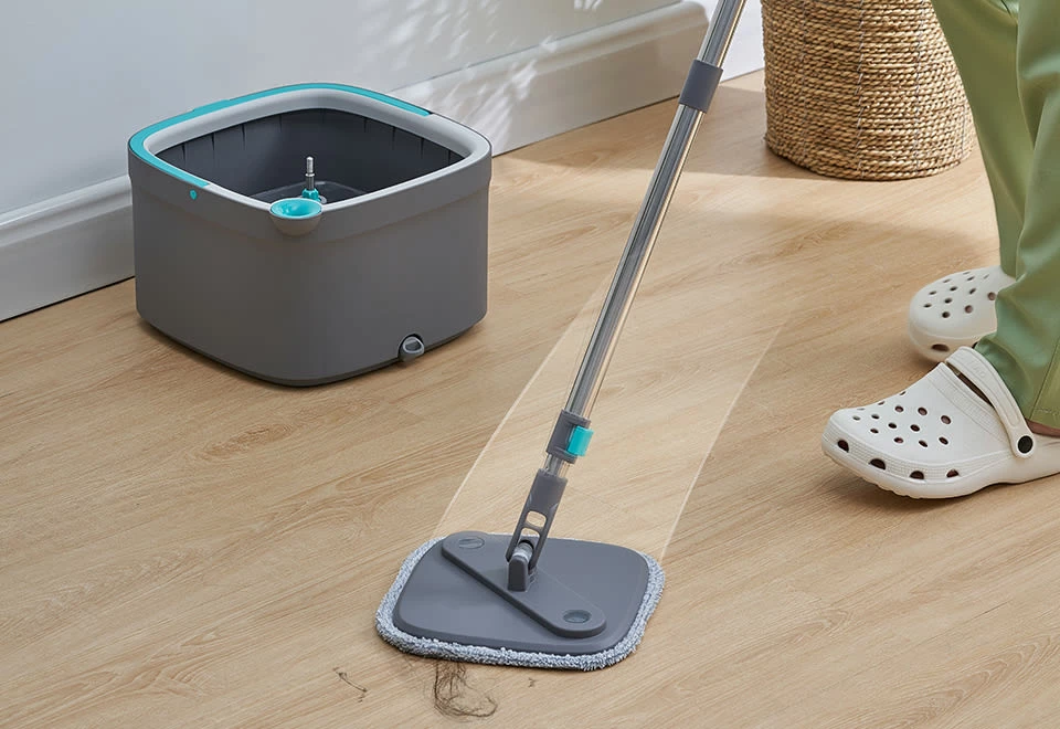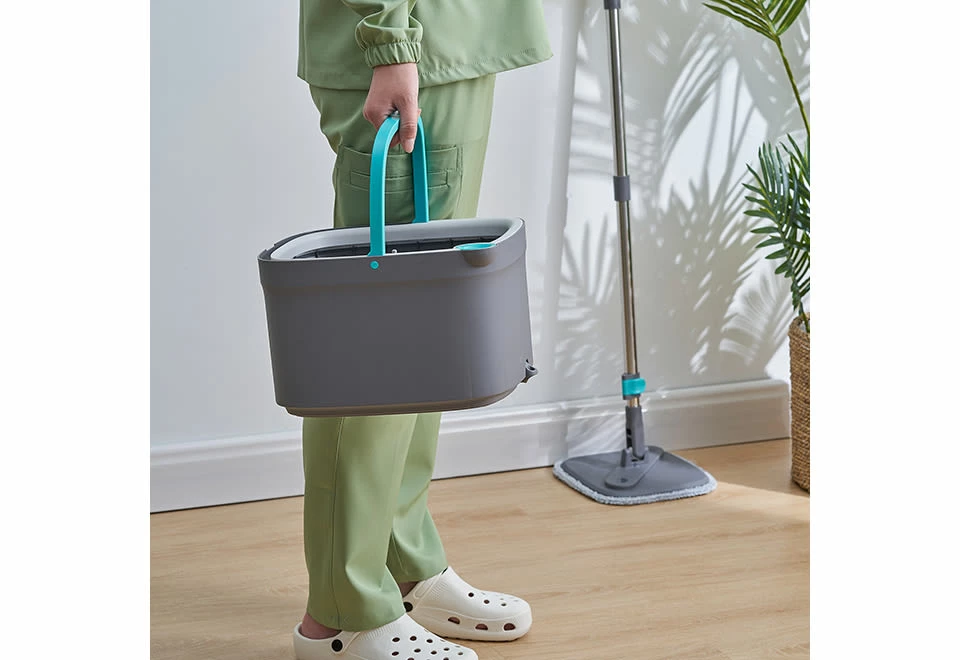 The Clean Water Mop System makes sure that dirty mop water never touches your floor. The secret is an innovative bucket with separate compartments for clean and dirty water.