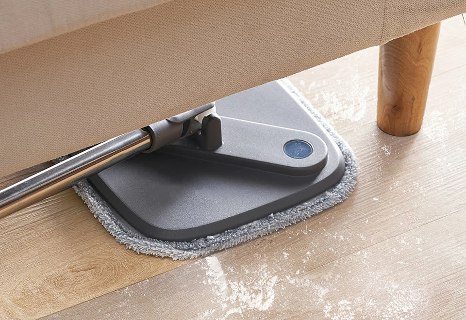 • Includes a built-in brush that cleans and scrubs the mop pad while it spins