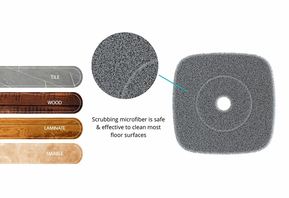 • 9” x 9” square microfiber mop pad with 360° rotation