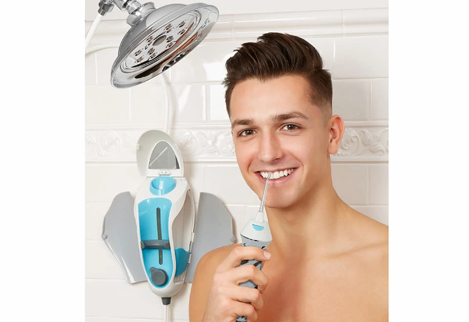 Keep your teeth clean and “flossed” in the shower. The Easy Flosser and Oral Irrigator connects to any shower head for a powerful new way to “water floss” your teeth and gums.