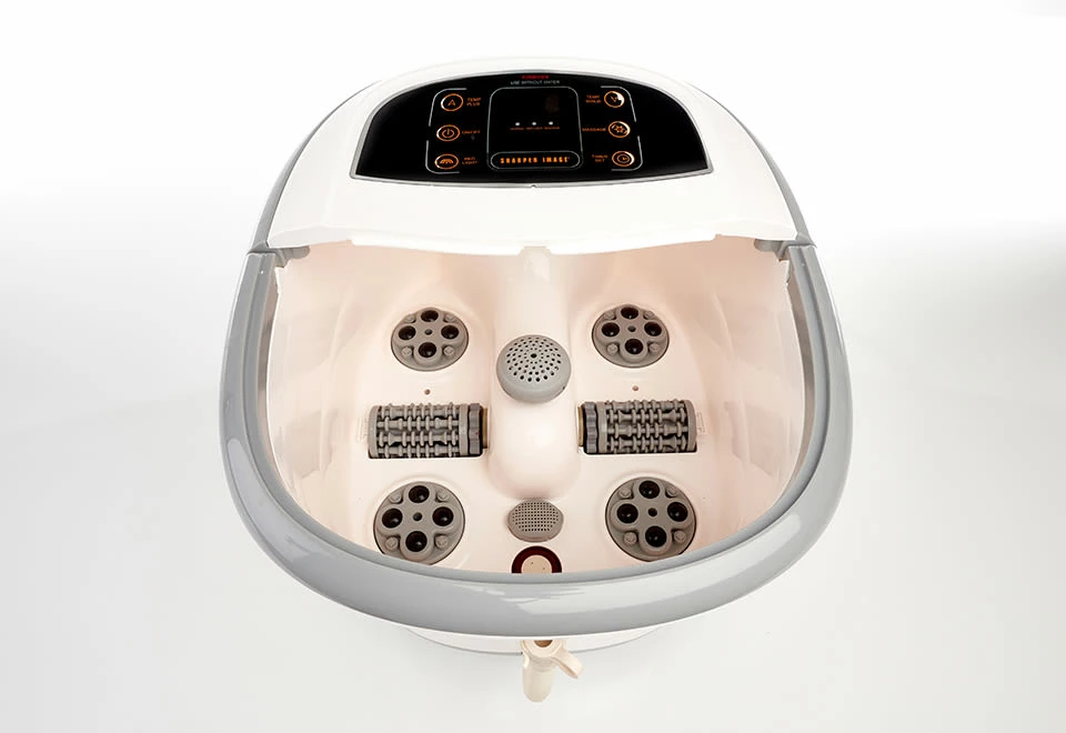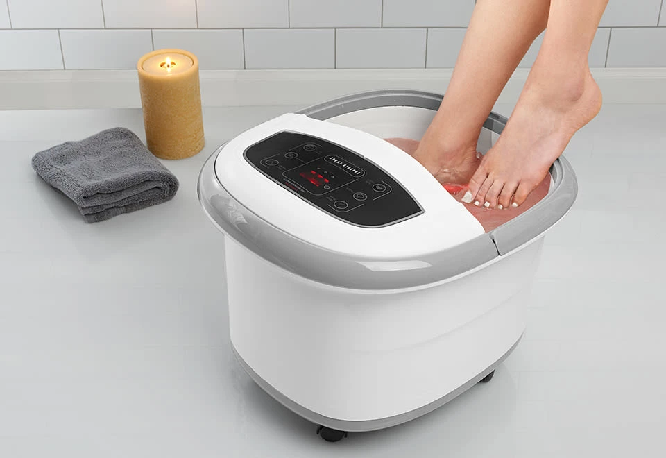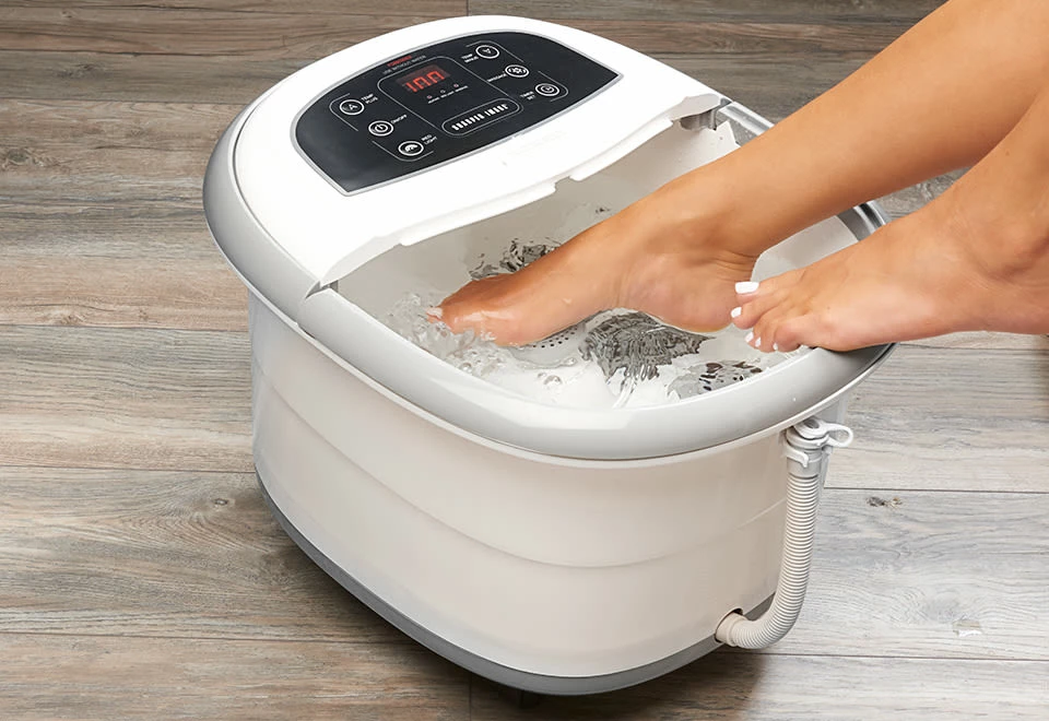 The Foot and Leg Spa soothes and pampers feet with invigorating air bubbles, heat and automatic foot rollers!