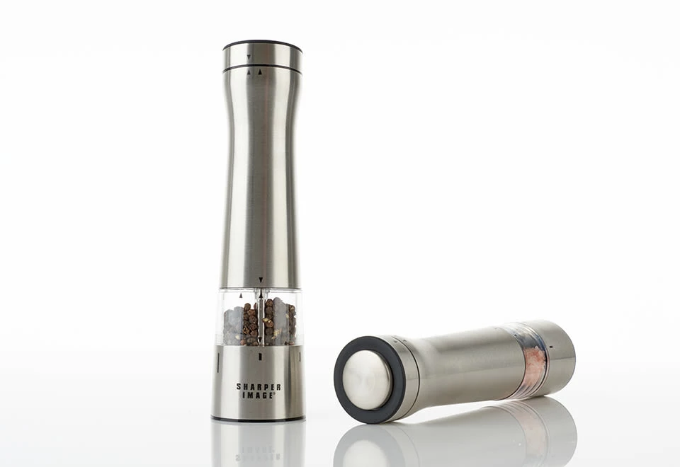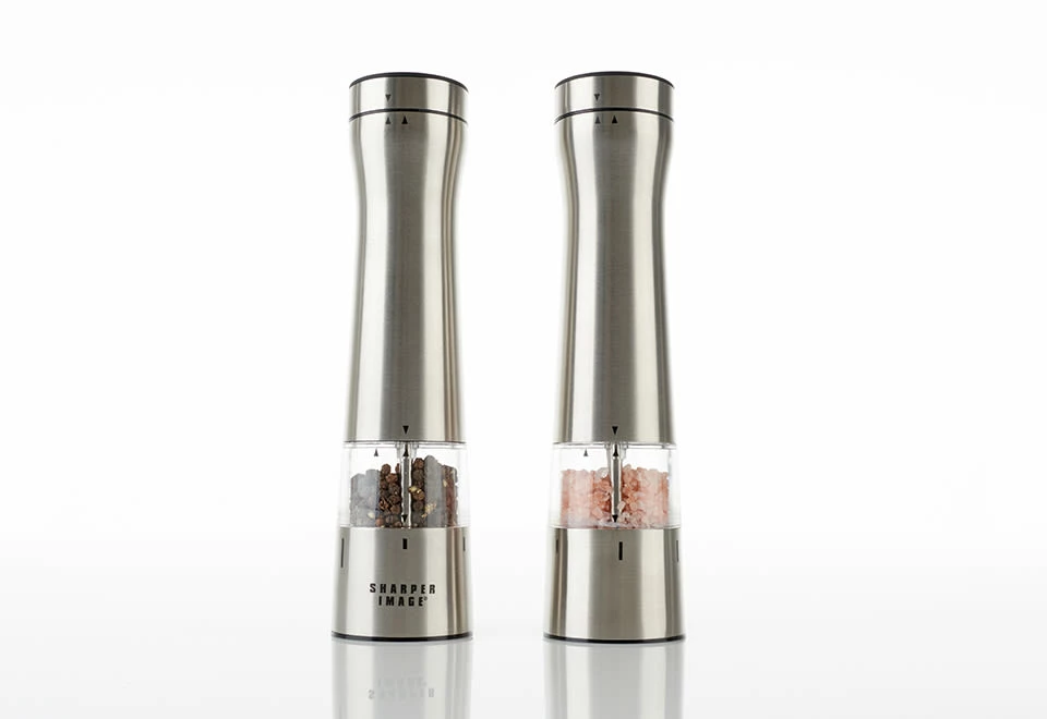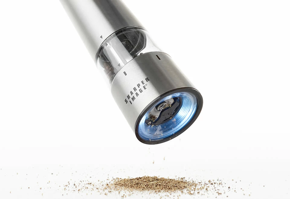 The Illuminating Electric Salt and Pepper Mill Set automatically grinds your favorite spices onto your food with ease!