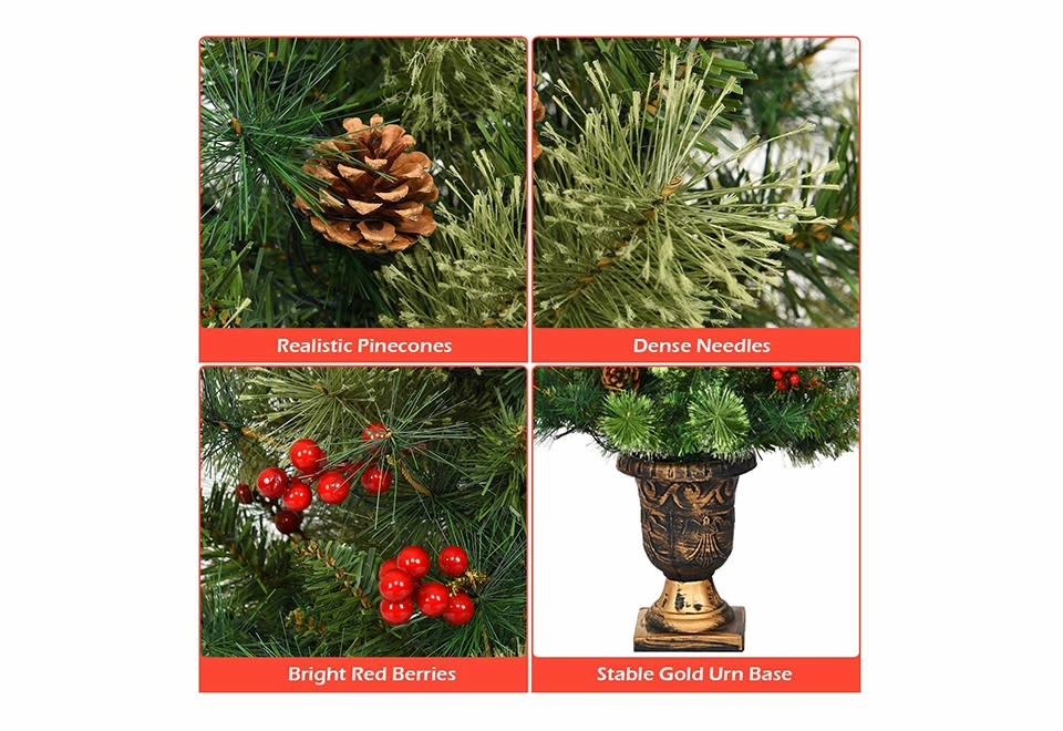 • Pre-decorated with realistic red berries and pine cones