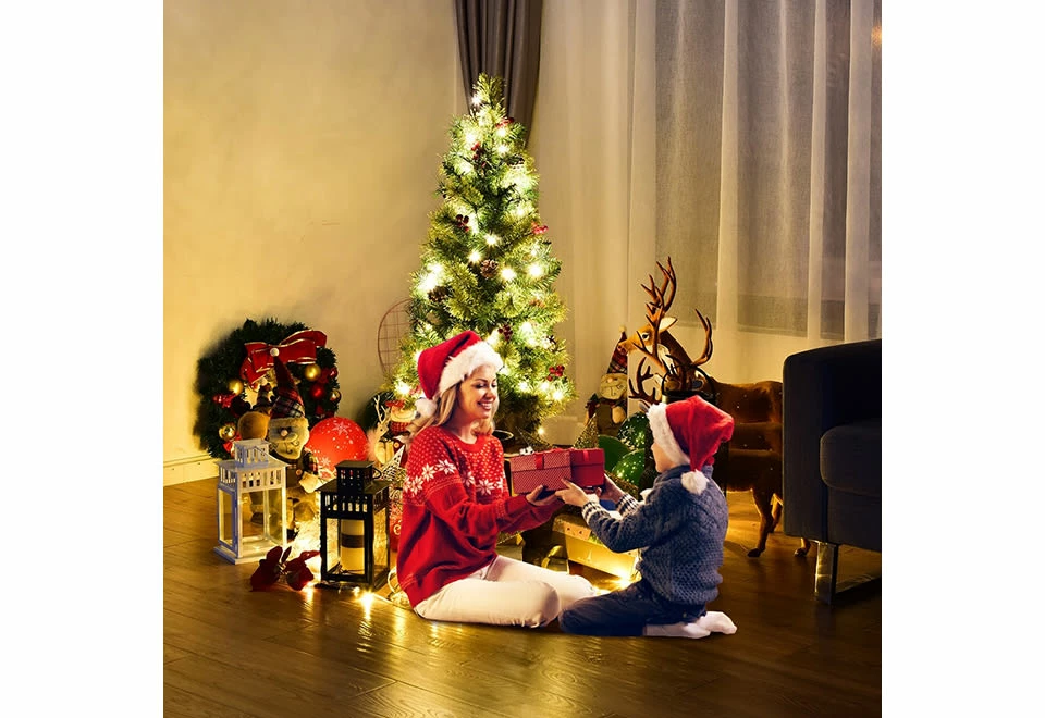 The LED Christmas Tree with Red Berries and Pine Cones complements your holiday décor with realistic branches, berries and pine cones, plus clear white LED lights. Place it anywhere for instant holiday cheer.