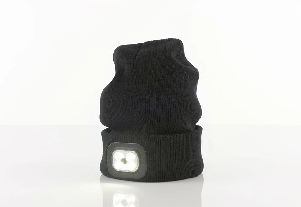The LED Light Up Beanie provides bright white illumination for work, play and nighttime safety. Its rechargeable lamp lasts up to 12 hours on a full charge.