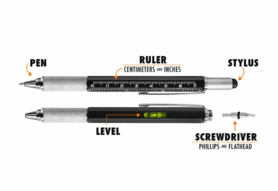 The Multitool Ballpoint Pen is the must-have accessory you’ll use every day. In addition to a fine writing instrument, it does extra duty as a screwdriver (flathead and Philips) and more.