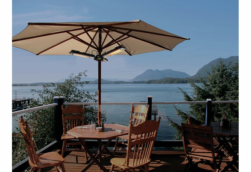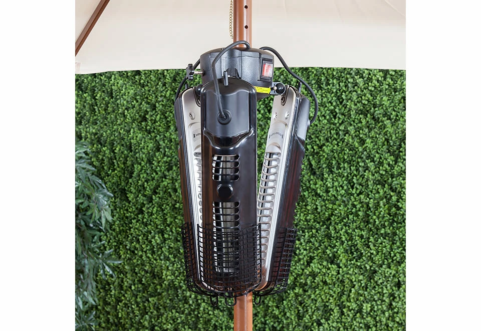 The Patio Umbrella Heater ushers in a new era in outdoor comfort, with 3 individually activated infrared lamps.