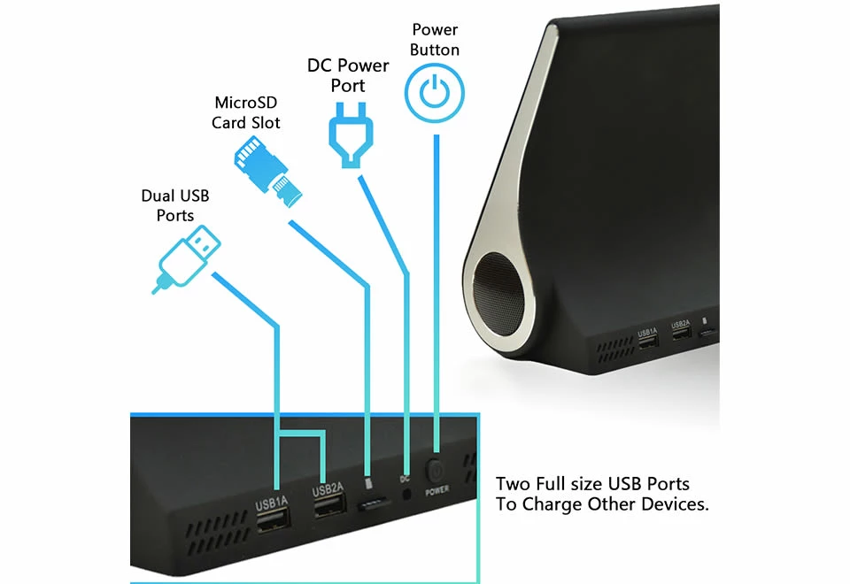 • 2 additional USB ports (1A, 2A) for wired charging of other devices (3 devices can charge simultaneously)