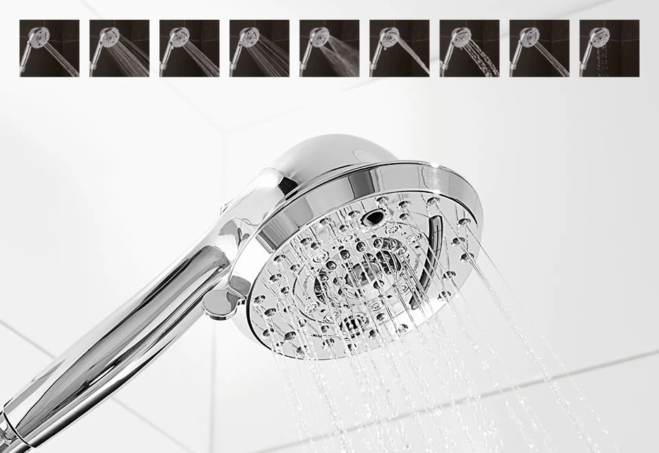 The Power Washing Showerhead provides 10 stream settings, from relaxing waterfall to robust massage, plus a high-power mode for power washing the shower stall.
