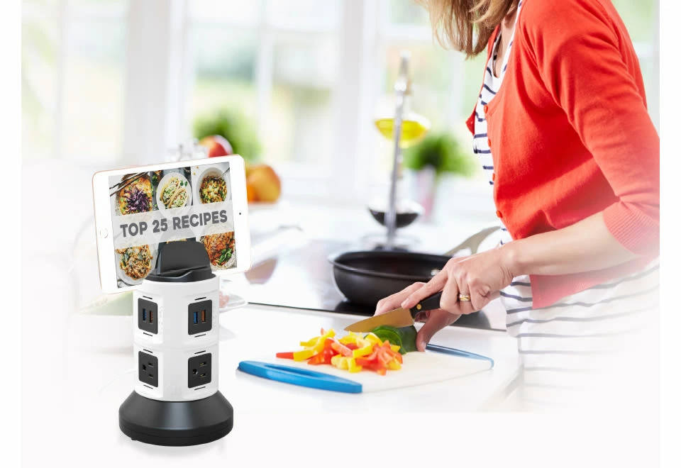 The Powerstrip Tower and Phone Charger is the perfect addition to any connected home It’s the smart charging station with 4 outlets and 6 smart USB ports to charge all your devices.