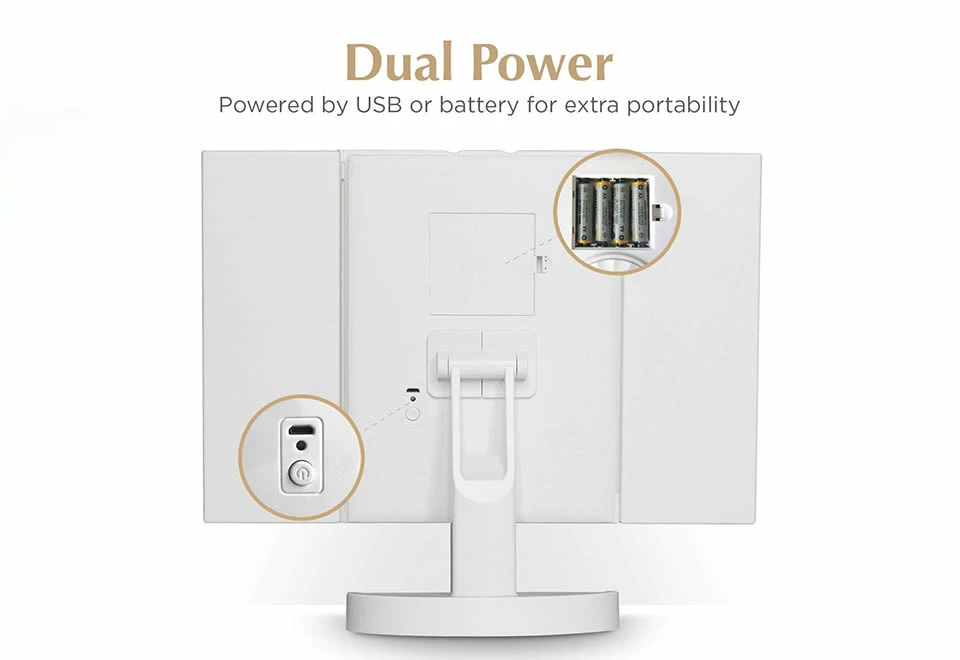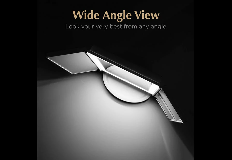 The Premium Multi Magnification Vanity Mirror is a tri-fold mirror that provides a view from every angle with its 5x and 10x magnification.