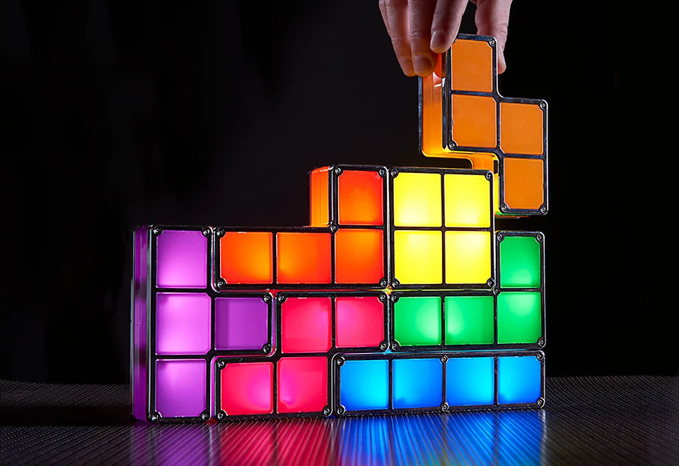 The Retro Stacking Accent Light features 7 interlocking pieces that you can configure into unlimited shapes.