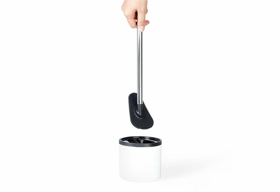 The Sanitary Brushless Toilet Bowl Cleaner flexes and bends to remove stains better than a traditional bristle brush.
