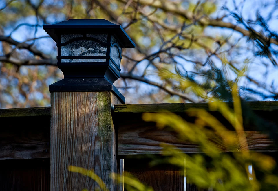 • Set of 4 solar-powered dusk-to-dawn fence post lights