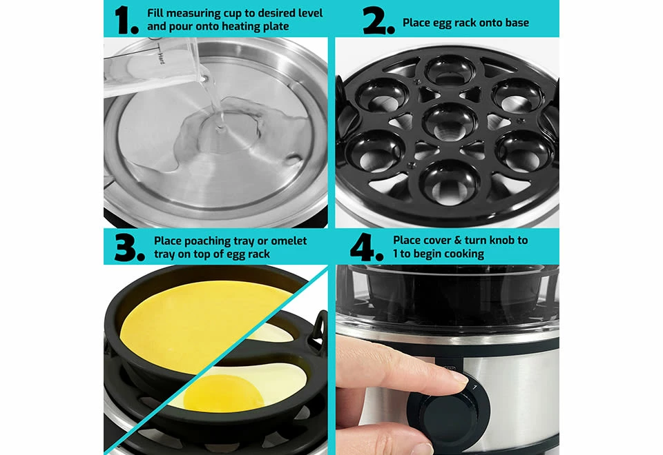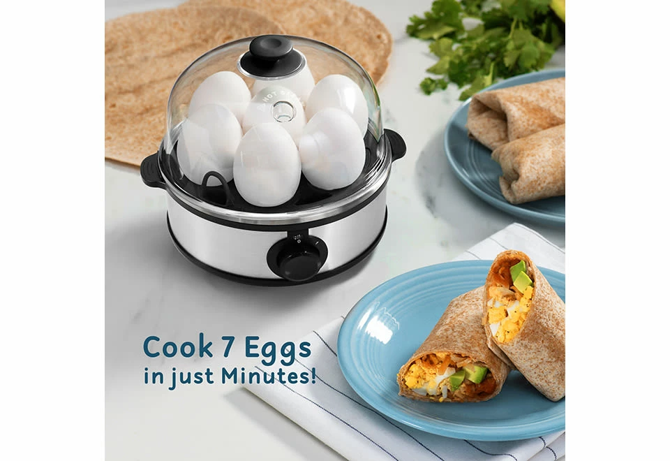 • Cook up to 7 eggs in soft, medium or hard boiled firmness