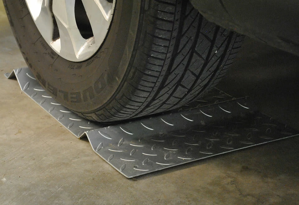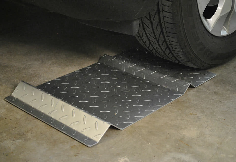 The Steel Parking Mat functions as a guide to help you park your car perfectly in the exact same spot without damage to your car or valuable items around the space. Simply position your car in the ideal spot and mark the floor around one of your front wheels. Move the car back and place the metal parking mat on the marked spot on the floor. The rubber feet on the mat will keep it in place as you park. It’s made of heavy duty steel to endure wear and tear with use. Ideal for use as a guide when parking in narrow garages.