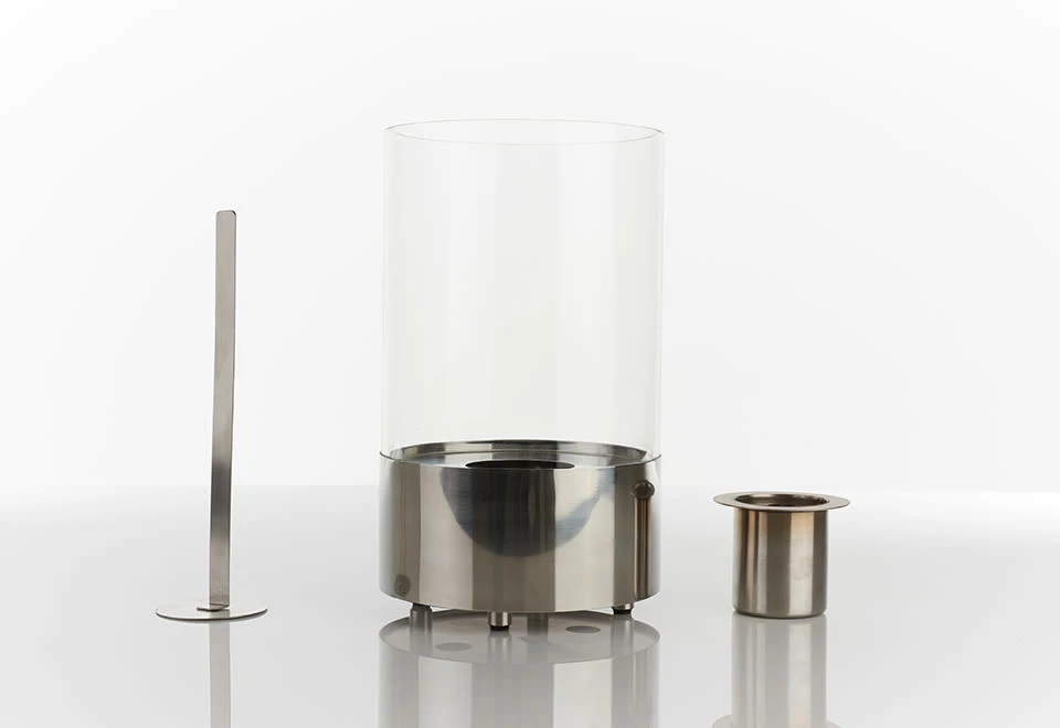 The Tabletop Round Fireplace creates a cozy ambiance, without the smoke, soot or ashes that come from an open fire.