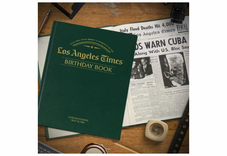 Celebrate your birthday, anniversary or any special date with The Los Angeles Times Personalized Birthday Book. This handsome hardbound volume chronicles your life through the power of newspaper reporting.