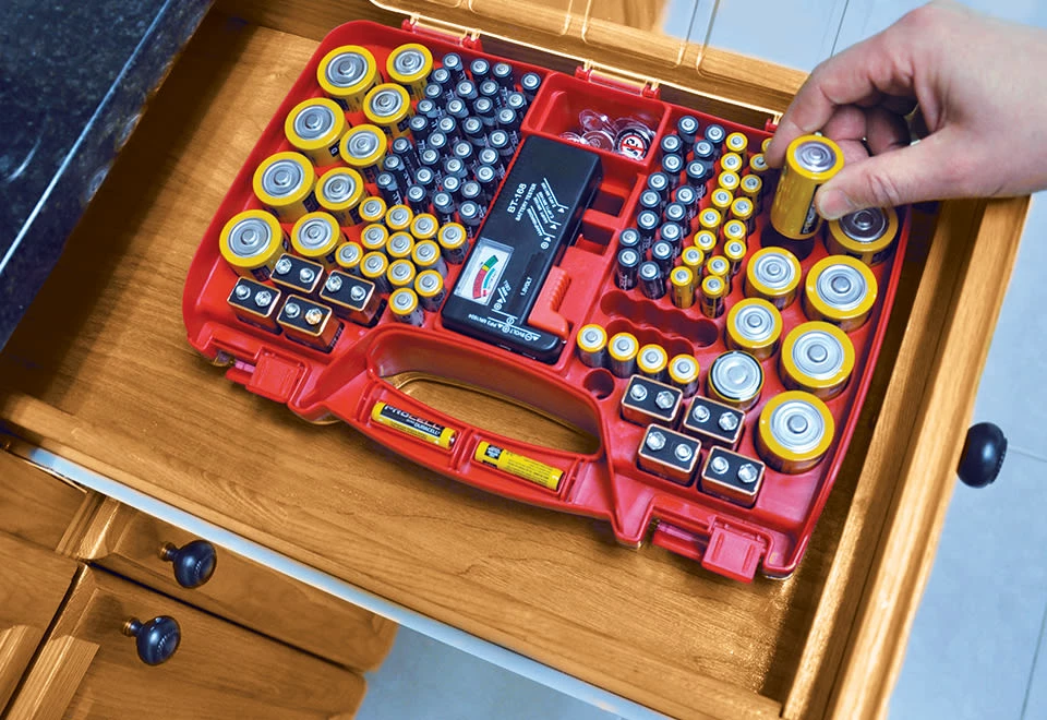 The Ultimate Battery Organizer stores up to 180 batteries, so you can find the ones you need right away. And, it stores the included battery tester to check the life of your batteries.