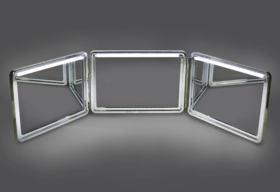 Be your own barber with the Ultimate Self Grooming System! Featuring three 9.5” x 14” mirrors with vibrant LED lighting, you’ll have all the angles covered as you shape, fade, blend, and style your hair with precision. A 10 ft. cord and two mounting brackets allow for easy setup anywhere in your home. This is one gift that definitely makes the cut! Plugs into an AC outlet.