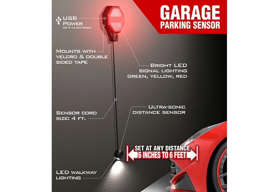 The Ultrasonic Garage Parking Sensor helps you park your car safely every time, with green, yellow and red LEDs that guide you into your desired spot.