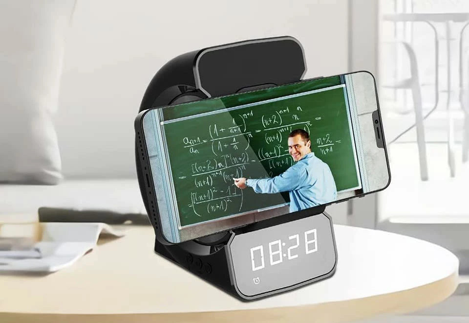 The Wireless Charging Stand and Speaker is the multifunctional device that holds and charges your phone, tells time and streams music. A built-in USB port lets you charge a second device at the same time with your existing charging cable.