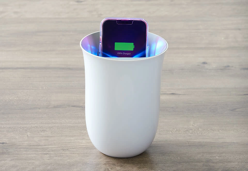The Wireless Charging Station with UV Sanitizer is a dual-purpose device that simultaneously disinfects and charges your smartphone.